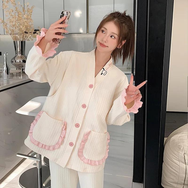 Пижама для беременных, женская, весна-осень, комплект из трех предметов для беременности, одежда для родов, послеродовой комплект для кормления грудью