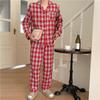 Свободная повседневная пижама для пары, милая кружевная винтажная красная клетчатая плотная ночная рубашка, осенне-зимняя домашняя одежда в стиле принцессы на Рождество