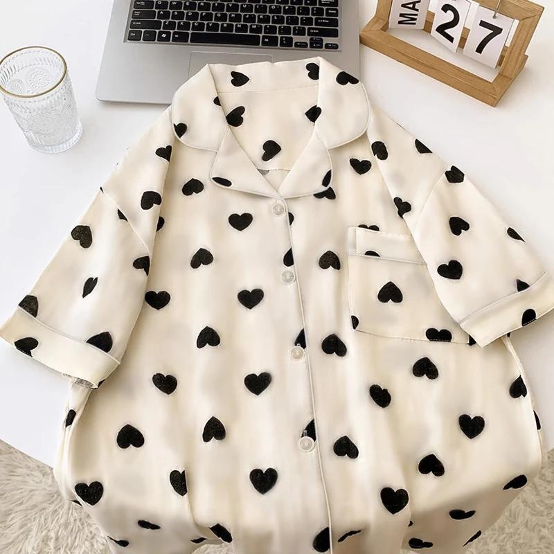Корейские Ins черные женские пижамы с принтом в форме сердца Cloud Cotton Cute Summer Y2k Sleepwear Vitality Youth Fashion Lounges