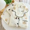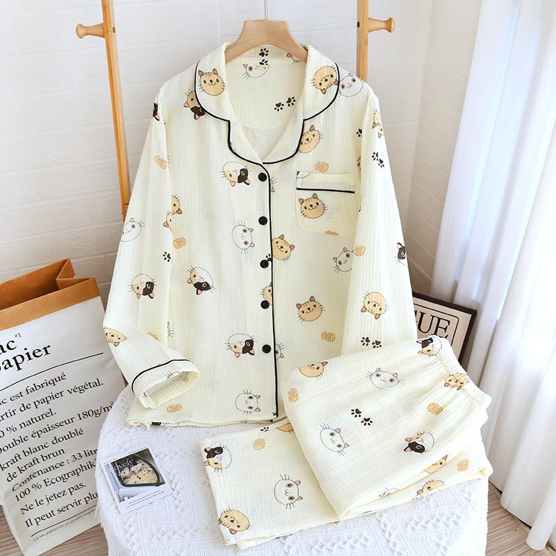 Весна/лето Женская пижама с длинным рукавом 2 предмета 100% хлопок креп пижама милый принт кота милая домашняя одежда одежда для сна