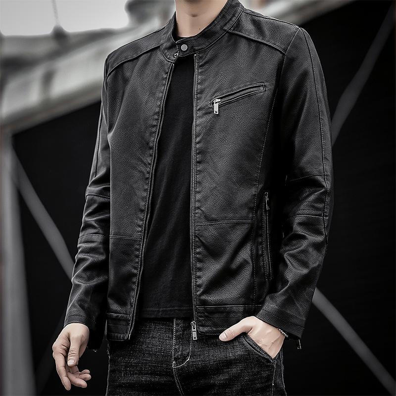 Осенне-зимняя мужская повседневная кожаная куртка, мужская куртка-локомотив, корейская версия, облегающая куртка из искусственной кожи для молодежи, тонкий бархат — купить товар онлайн с бесплатной доставкой по всему миру!