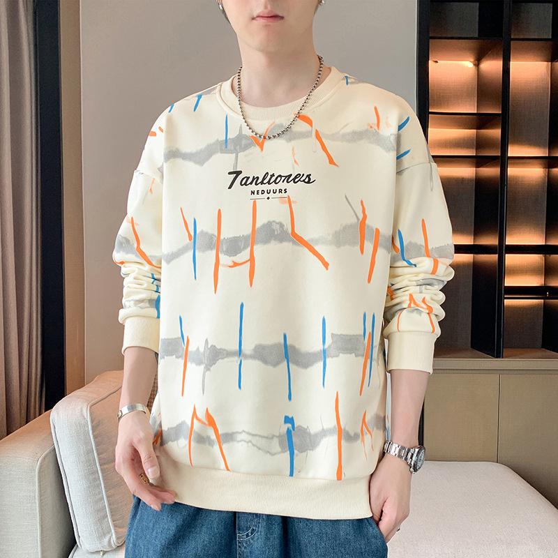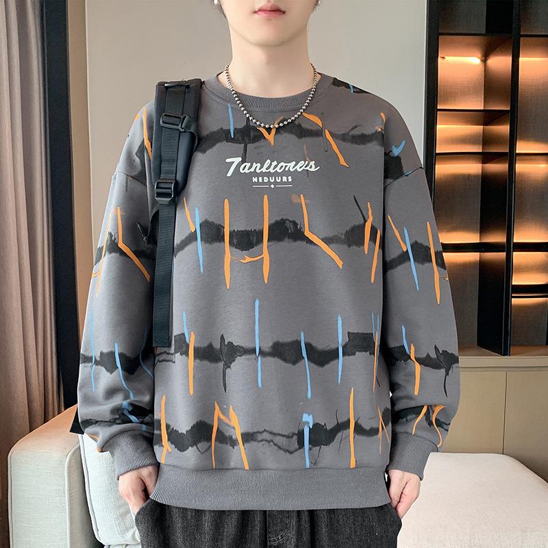 Весенне-осенний свитер с круглым вырезом, мужской, в гонконгском стиле, свободный и простой, молодежный, с длинным рукавом, мужской пуловер