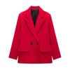 Женская мода с карманами, однотонный двубортный блейзер в винтажном стиле с длинными рукавами и вырезом на шее, женские офисные наряды для леди