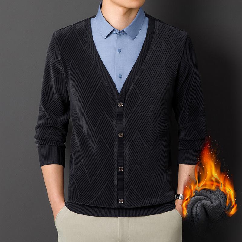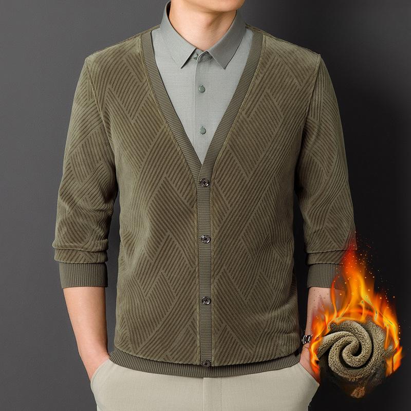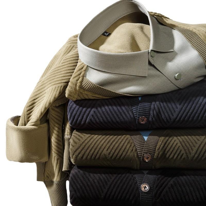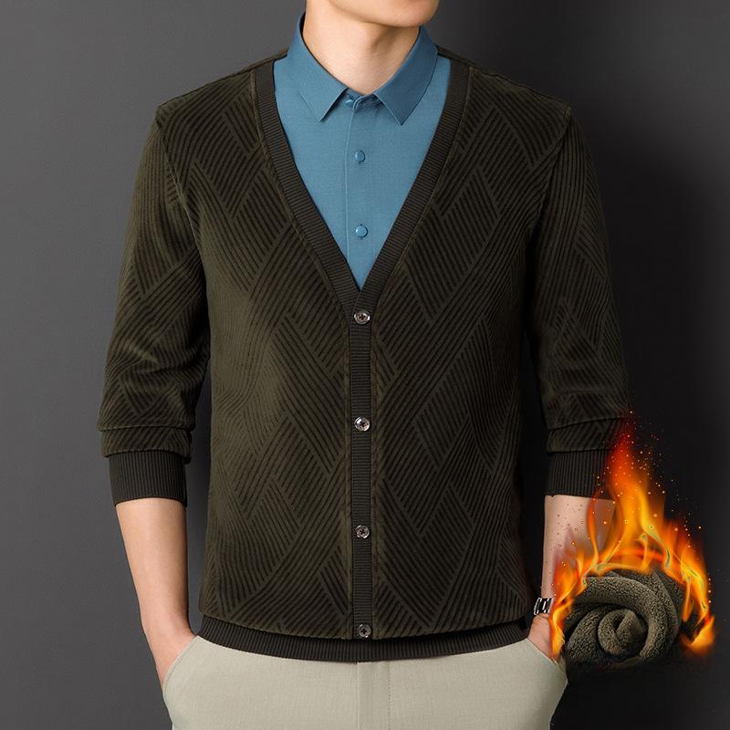 Осенне-зимняя новая мужская рубашка из двух частей с V-образным вырезом, деловая, повседневная, утолщенная, теплая, модная мужская рубашка из бархата