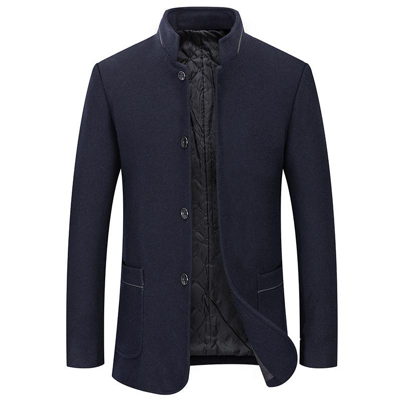 Осенне-зимнее мужское шерстяное пальто Деловое повседневное шерстяное пальто для людей среднего возраста Высококачественное мужское пальто с воротником-стойкой