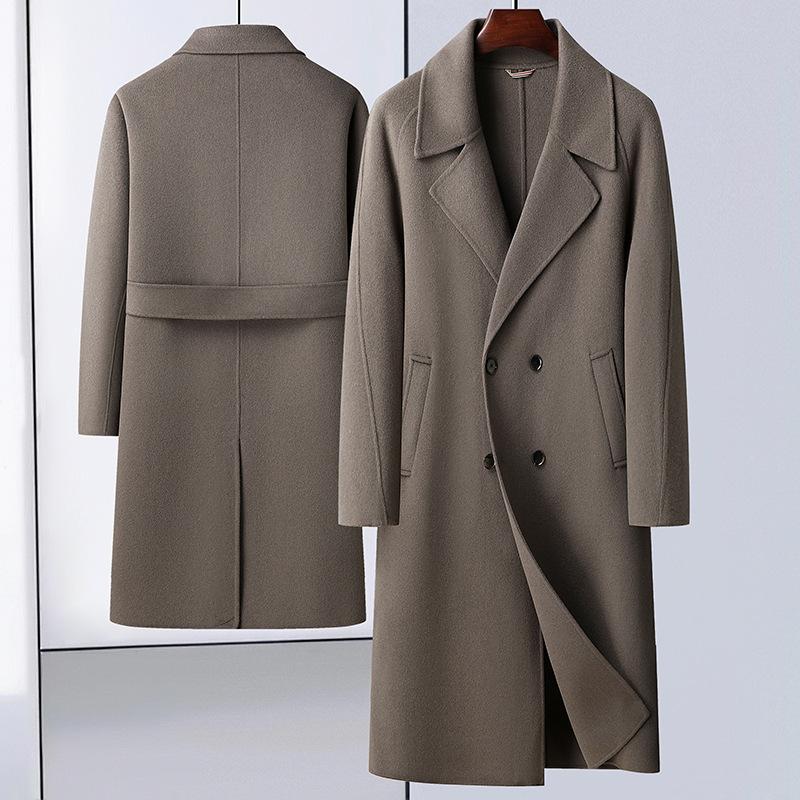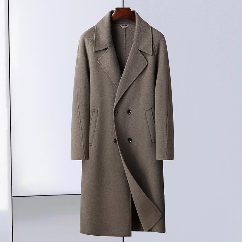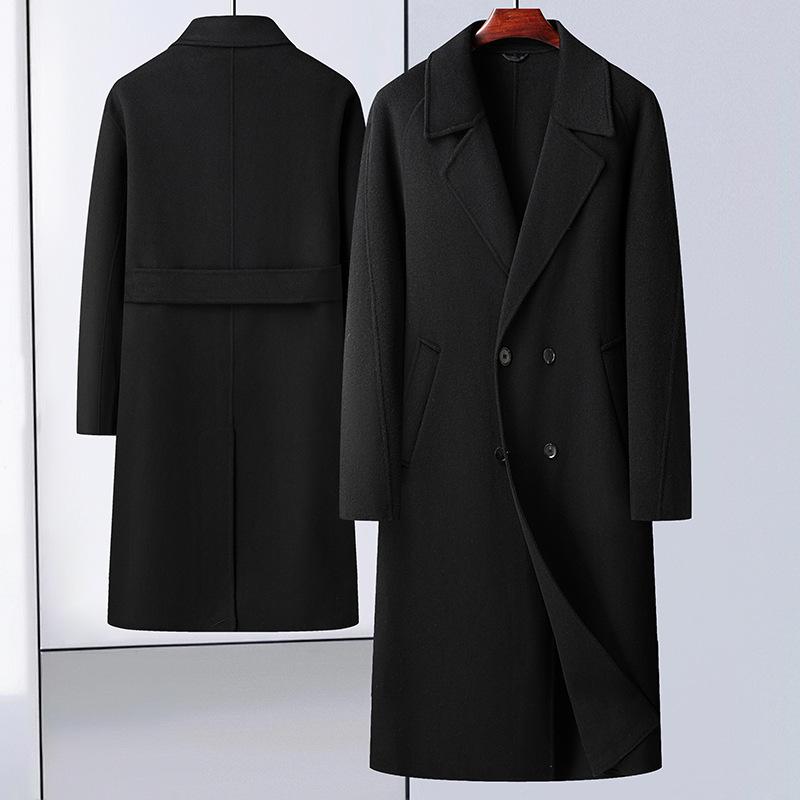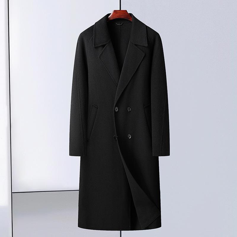 Двубортное шерстяное пальто, длинное выше колена, двубортное шерстяное пальто с открытыми плечами, мужское шерстяное пальто в корейском стиле