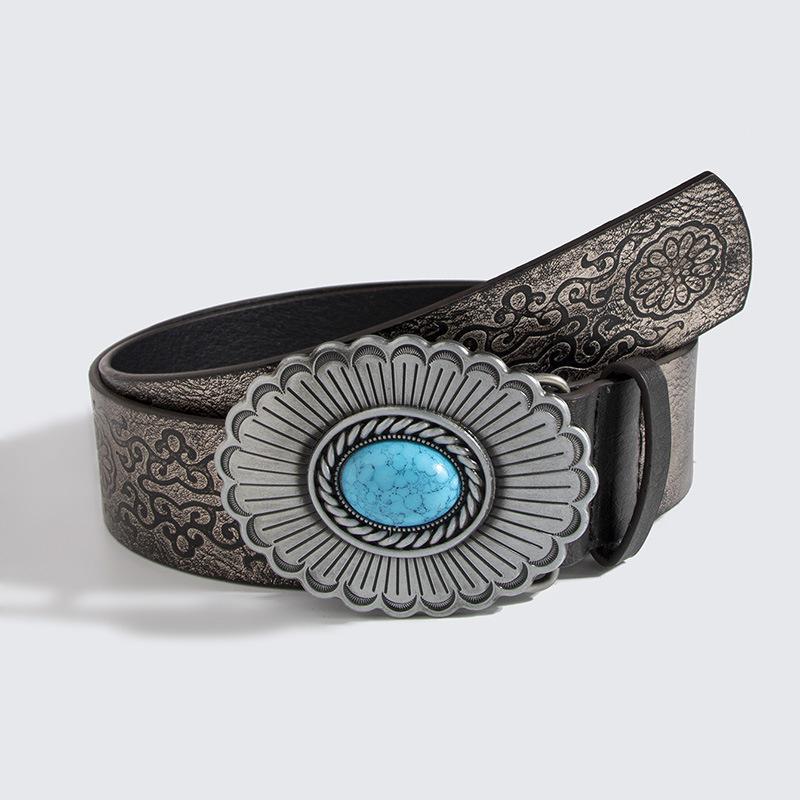 Ретро состаренный высококачественный тяжелой промышленности женский ремень с большим драгоценным камнем в виде цветка, модный женский ремень с темным тиснением для горячей девушки