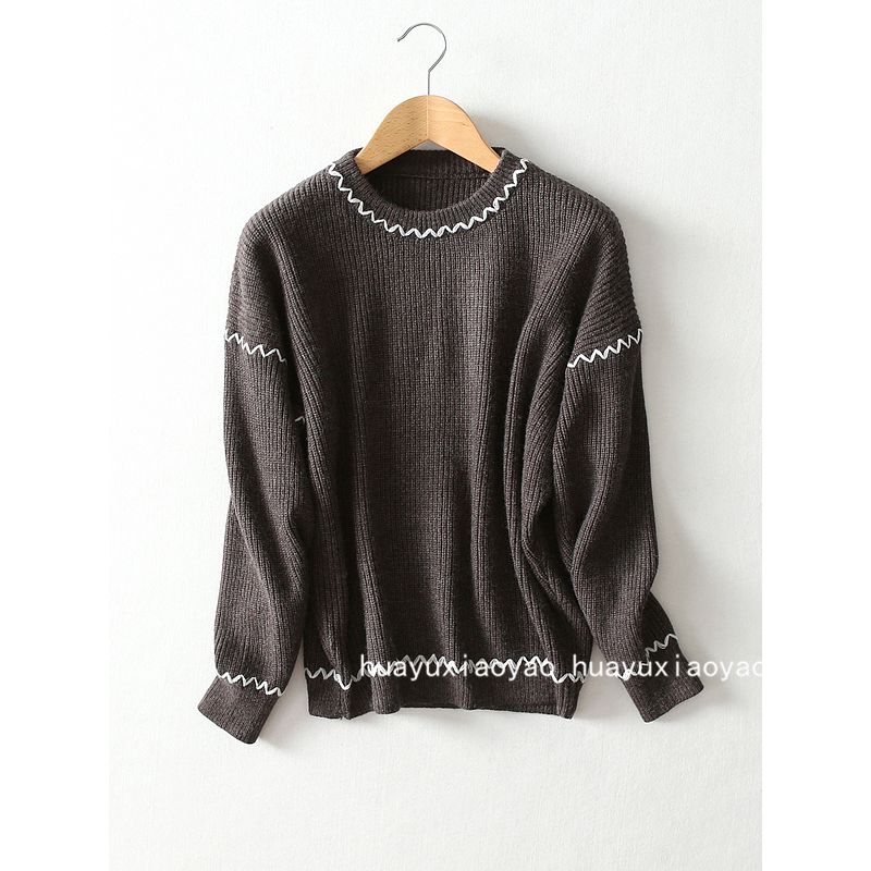 Special Price ~ Solid Color Simple All-Match Bright Line Short Round Neck Pullover Sweaters Thickened Bottoming Shirt Ladies Fall and Winter