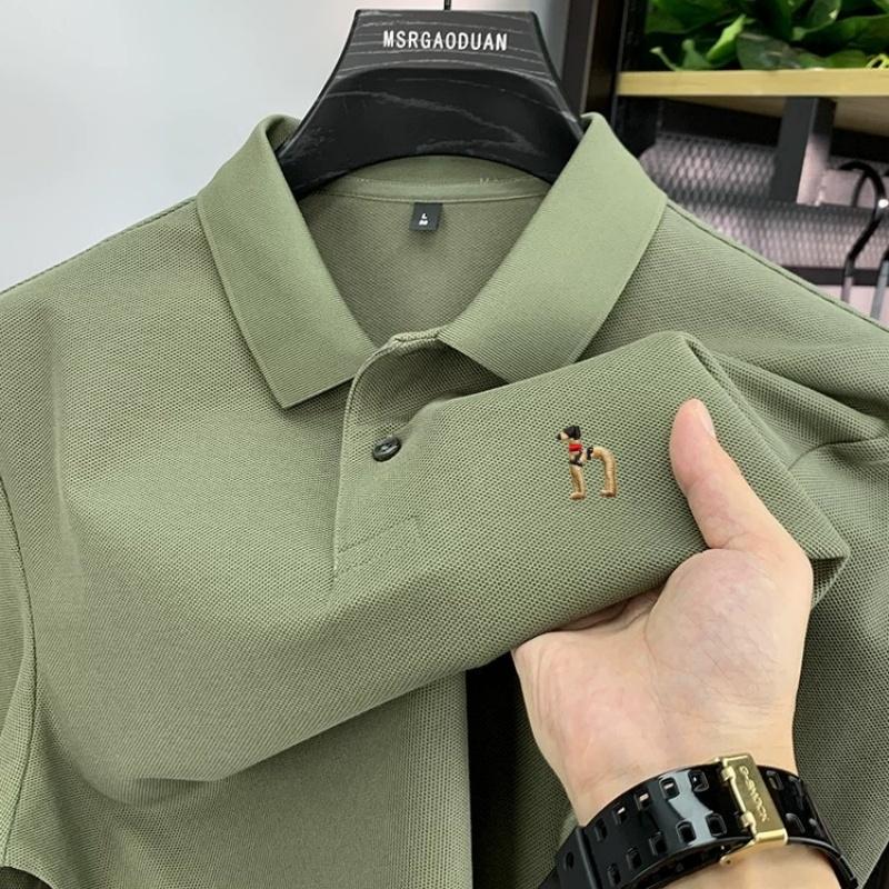 100% Хлопок Мужская Футболка Поло с Длинным Рукавом Бренд Легкой Роскоши Мода Мультяшная Вышивка Щенка Деловой Повседневный Новый Футболка