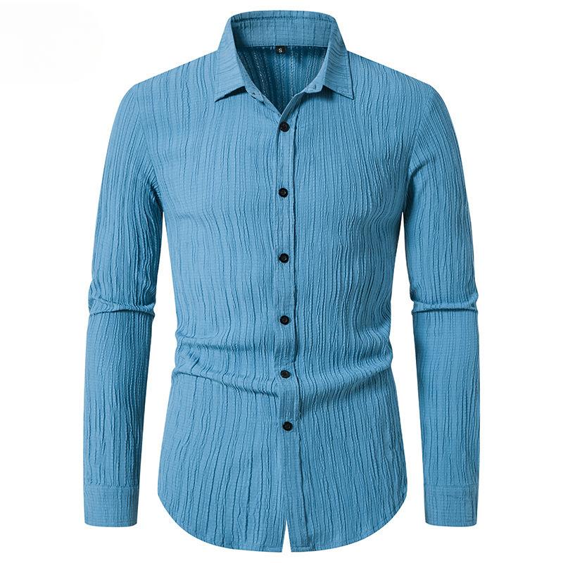 Мужская модная волнистая рубашка из хлопка и льна с лацканами, рубашка на четыре сезона