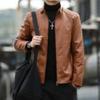 Мужская кожаная куртка Весна и осень Куртка-локомотив Воротник-стойка Мужская верхняя модная короткая кожаная куртка Бархатная кожаная куртка