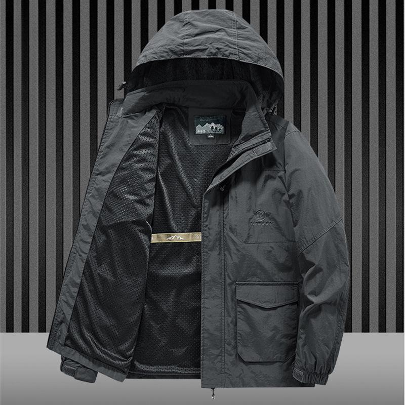 Мужской тренчкот на весну и осень, повседневный, с воротником-стойкой, свободный топ, большой размер, со множеством карманов, для среднего возраста, съемный верх для шляпы