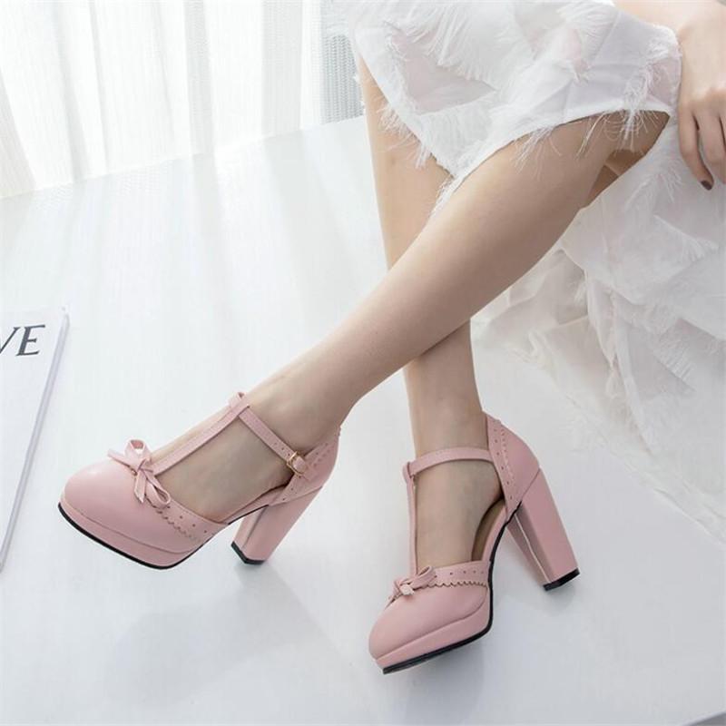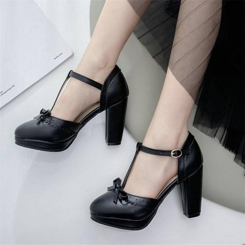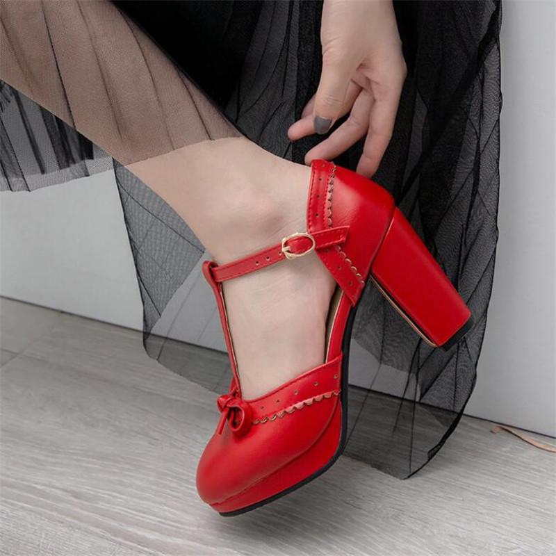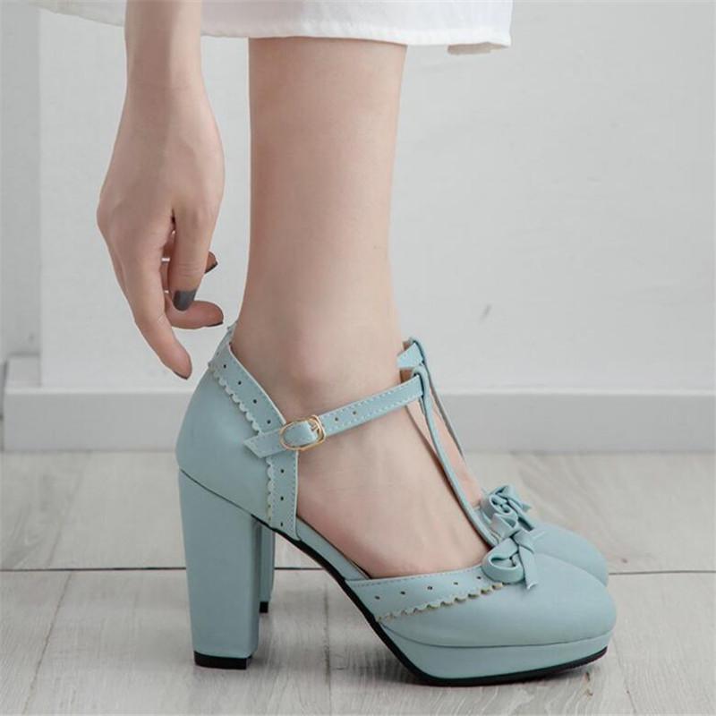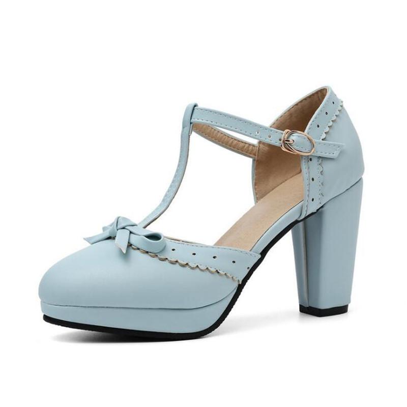Туфли для девочек Новые женские туфли-лодочки Мэри Джейн с Т-образным ремешком Женские туфли на шпильке 8 см Туфли-лолиты с бантом Ремешок с пряжкой Свадебная обувь