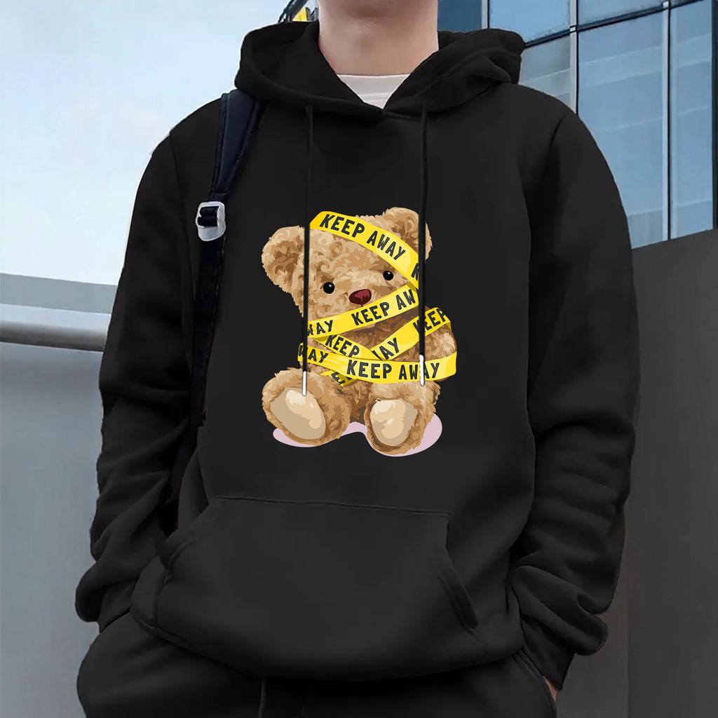 "Медведь" Мужские повседневные худи флис хип-хоп 250 г/м² однотонный пуловер толстовка мужская спортивная одежда одежда толстовка мужская одежда