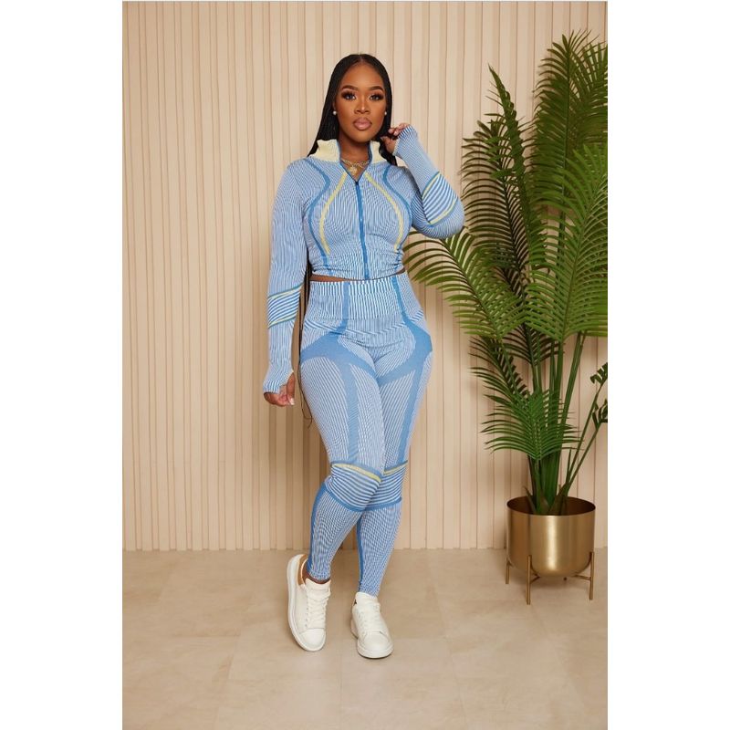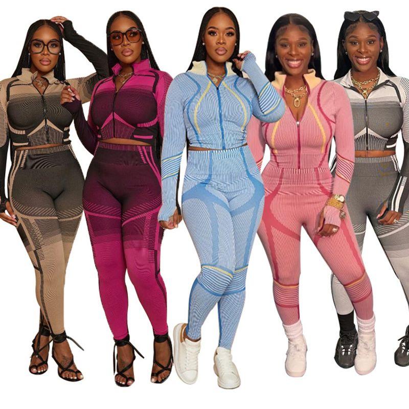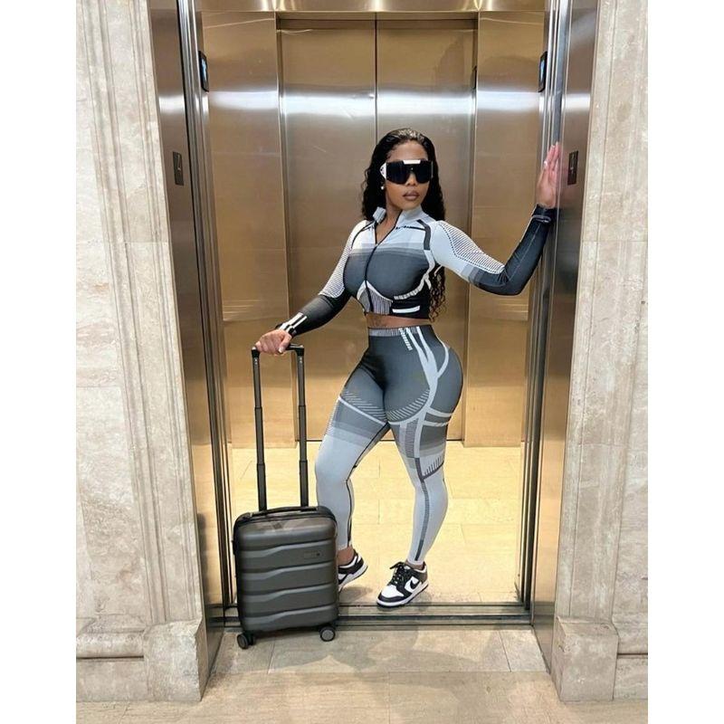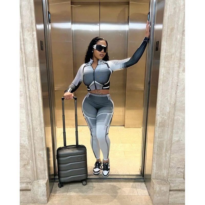 Европейская и американская женская одежда Осень и зима Трансграничный Amazon Новый принт с нерегулярным узором Длинные рукава Длинный облегающий спортивный костюм