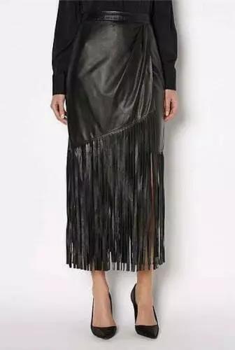 Юбка с бахромой женская черная для вечеринки из натуральной овчины мягкой кожи ручной работы стильная
