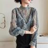 Женская блузка Шифоновая рубашка Женская с длинным рукавом Весенняя с принтом Кружевная рубашка Топ