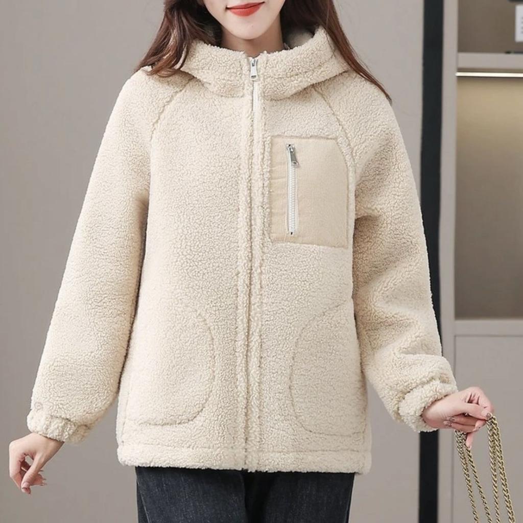 Пальто Женское Теплое С Капюшоном Хлопковое Пальто Частицы Плюс Бархат Свободное Осенне-Зимнее Женское Шерстяное Пальто Утепленное Большого Размера