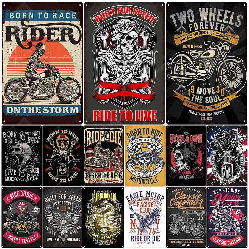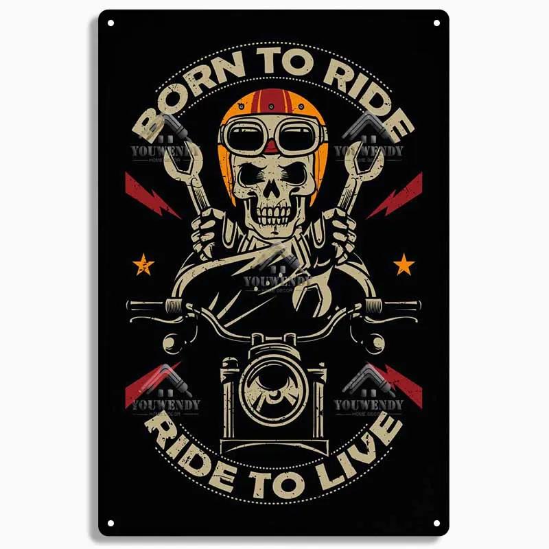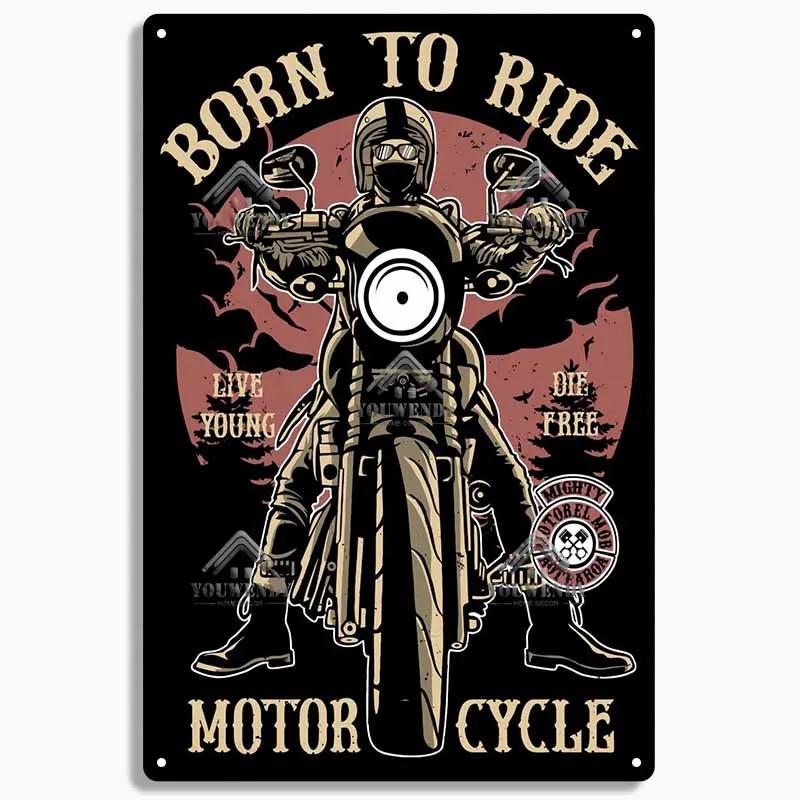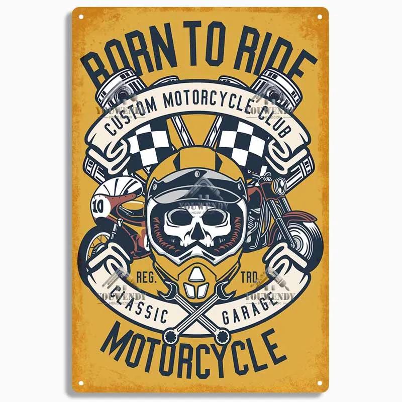Рожден, чтобы ездить Мотоциклетные Жестяные Таблички, Ретро Металлическая Табличка, Винтажный Настенный Декор, Гараж, Бар, Мужская Пещера, Декоративная Тарелка