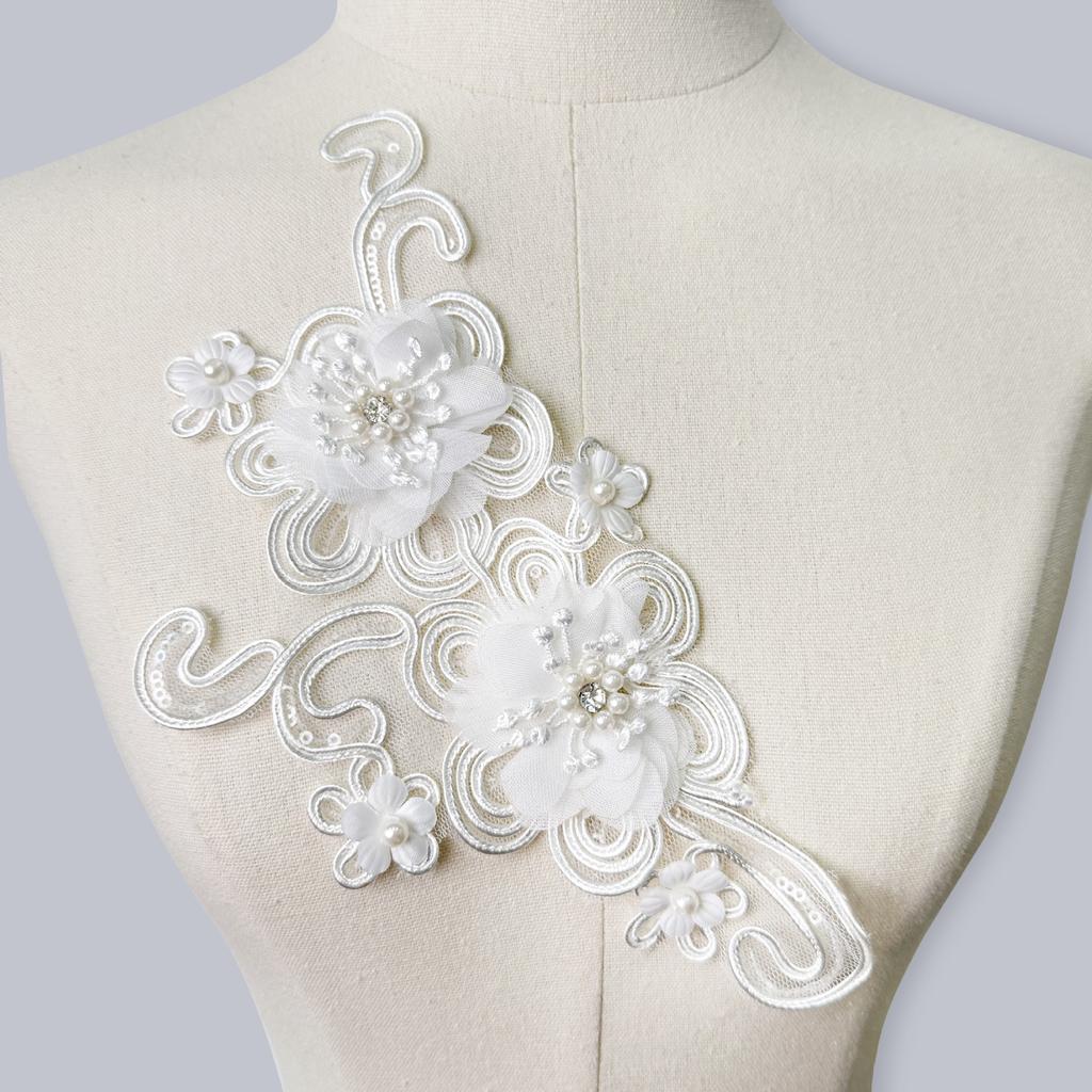 Сетка Вышивка Кружево Трехмерный Цветок Бусины Свадебное Платье Платье Шляпа Обувь DIY Аксессуары