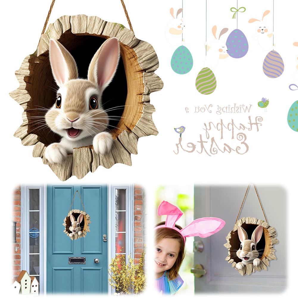 Пасхальная дверная табличка Кролик Приветственная табличка Деревенский кролик Подвесной кулон Счастливой Пасхи Украшение
