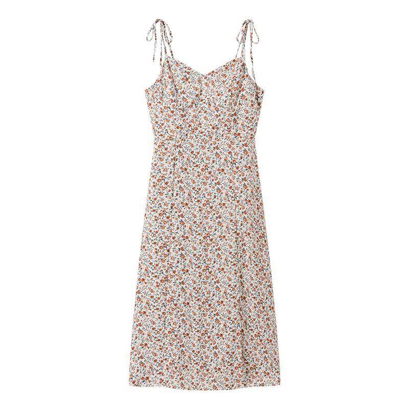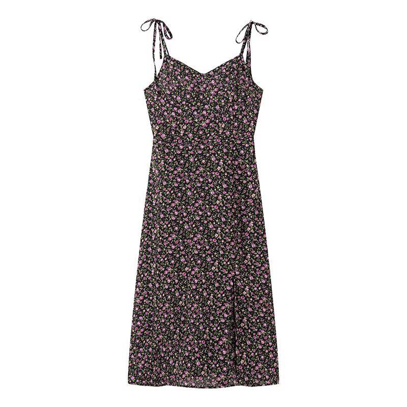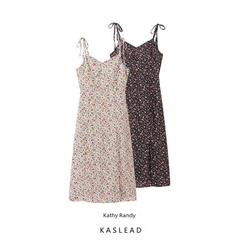 Kaslead Новое поступление Женская одежда Модный стиль Модный Французская простота Принт Платье-слинг с полуразрезом