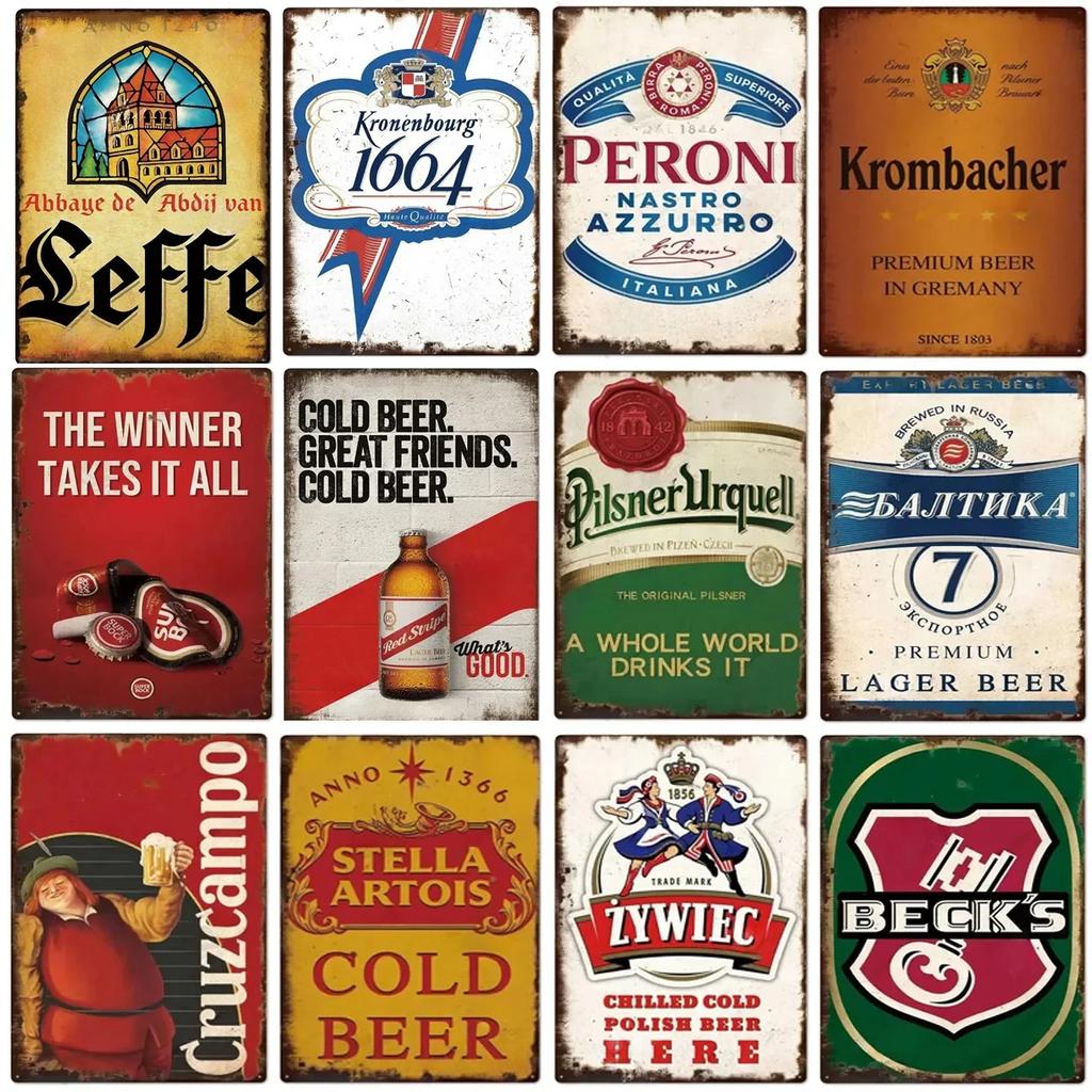 Настенный декор Табличка Бар Пиво Вино Металлический постер Тарелка Винтажная Жестяная вывеска Украшение Мужская пещера Гараж Железная табличка Живопись Потертые вывески