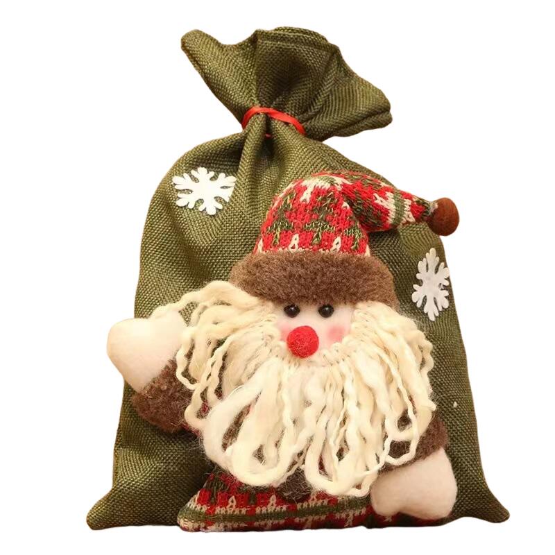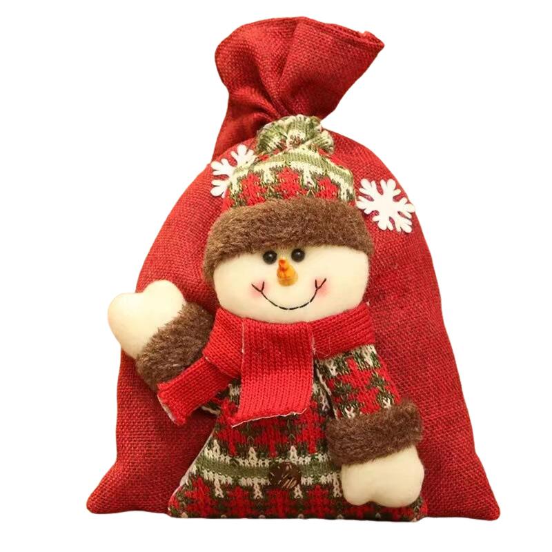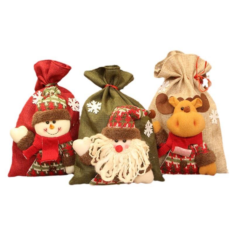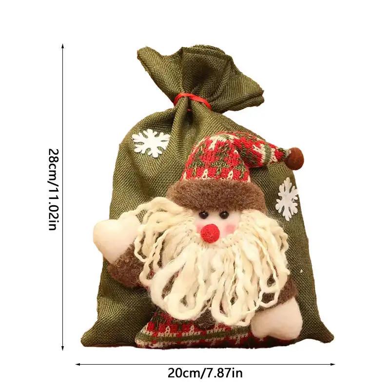 Большой Рождественский Льняной Мешочек на Завязках для Подарков Конфет Упаковочный Мешочек Новогодний Праздничный Мультяшный Яблоко Носок Рождественское Украшение