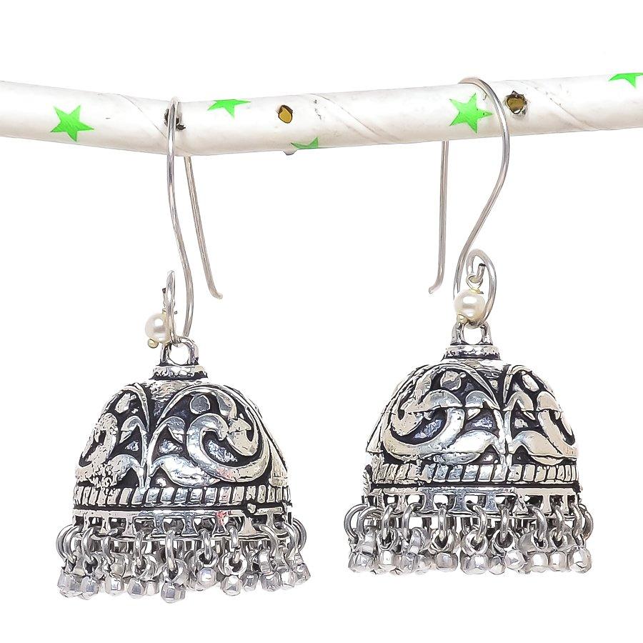Natural Indian Look Jhumki Gemstone Silver Tribal Bali Earring 2.17" Z2d61