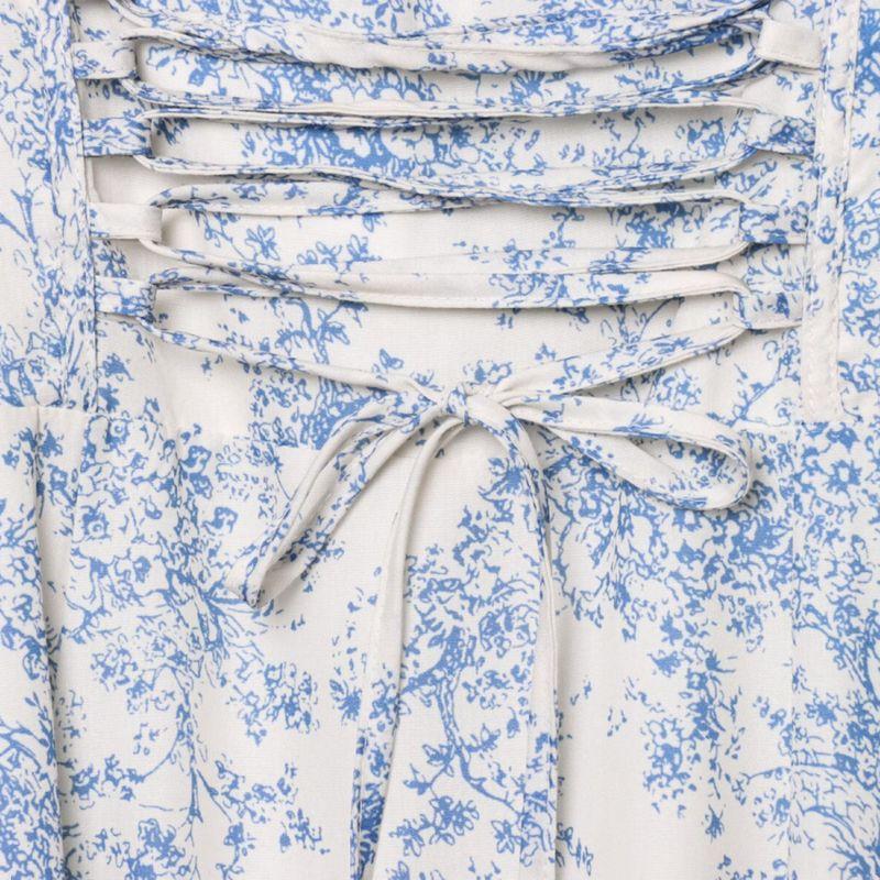 Kaslead New Women clothes Western Style Waist Hugging Blue and White Porcelain Print Bandage Split Short sleeve Dress Long dress