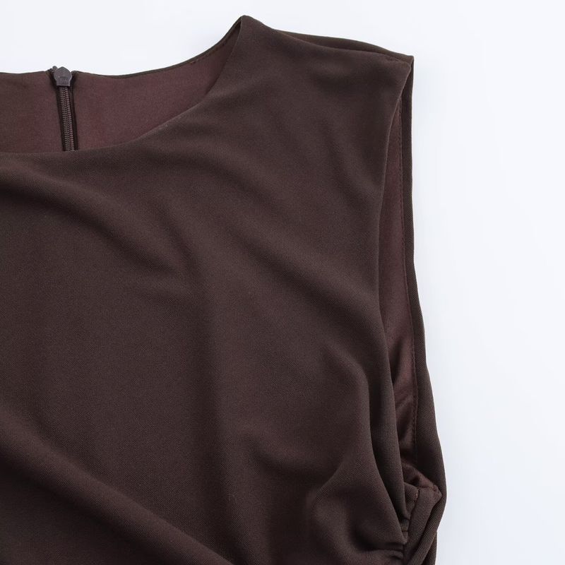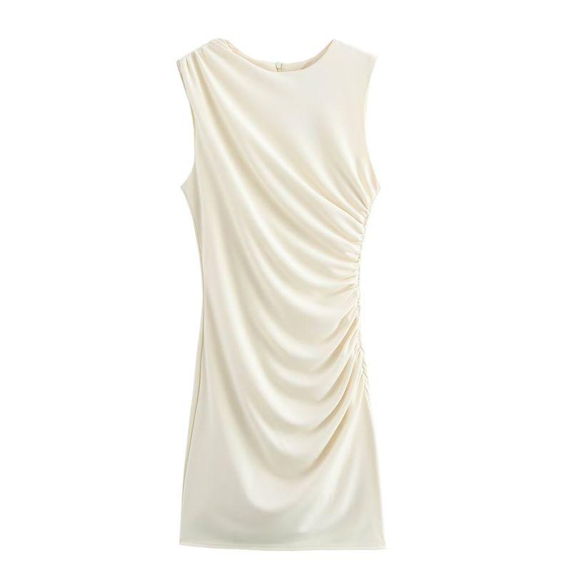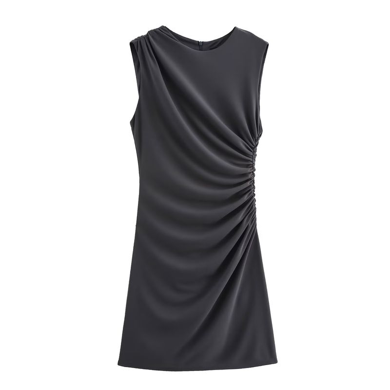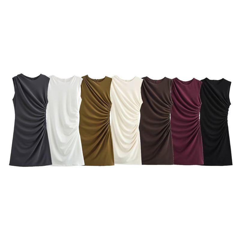 Kaslead New Arrival Women's Clothing Fashion Style Multi-Color Selection Pleated round Neck Short Sleeveless Dress 3067260