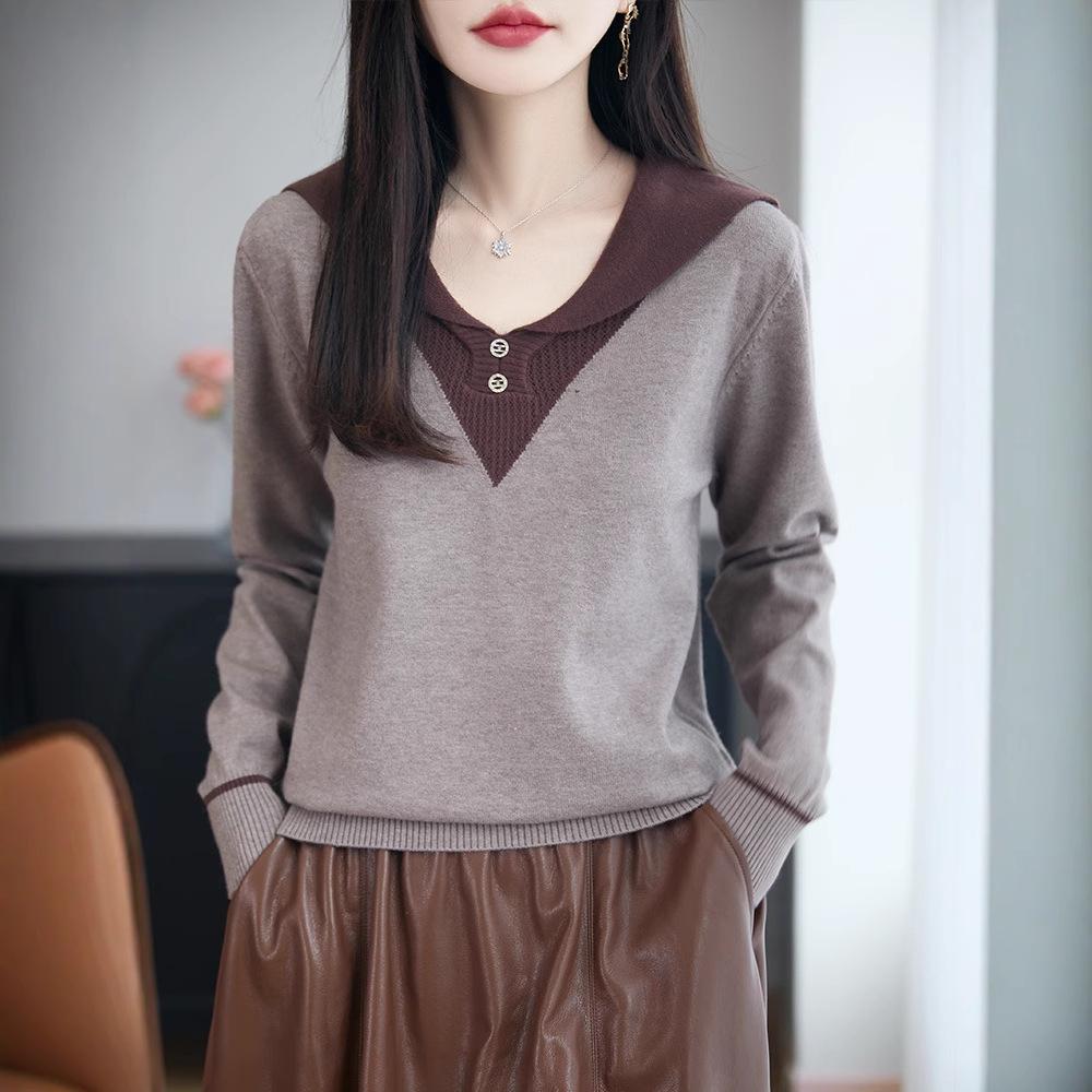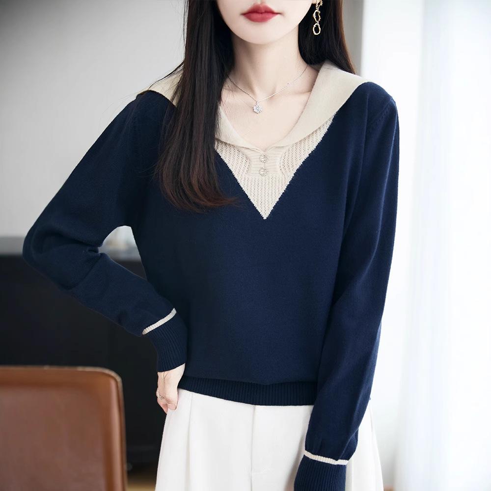 Двухкомпонентный свитер с ложным воротником-стойкой, Женский модный вязаный свитер, Свободный топ, Универсальный вязаный свитер