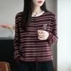Новый многоцветный вязаный кардиган с круглым вырезом и длинными рукавами для весны и осени с вышитыми полосатыми сердечками