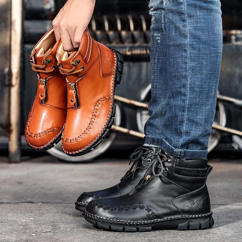 Мужские ботинки ручной работы из натуральной кожи Ретро ботинки Мужская натуральная кожа Большая мужская обувь Высокий верх