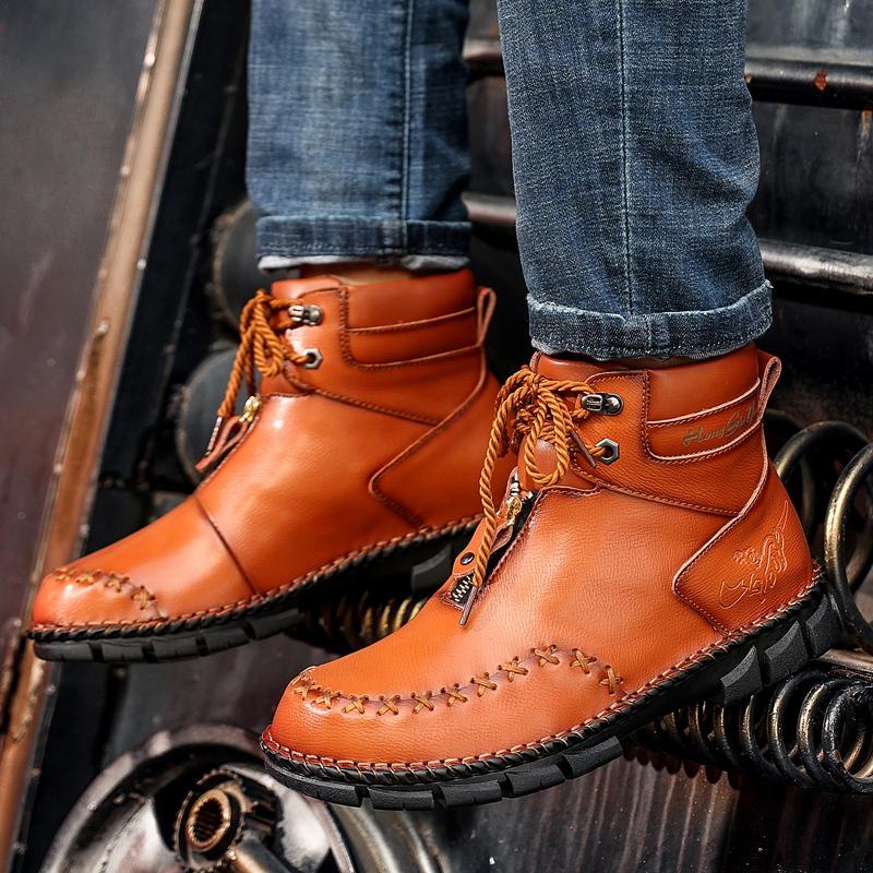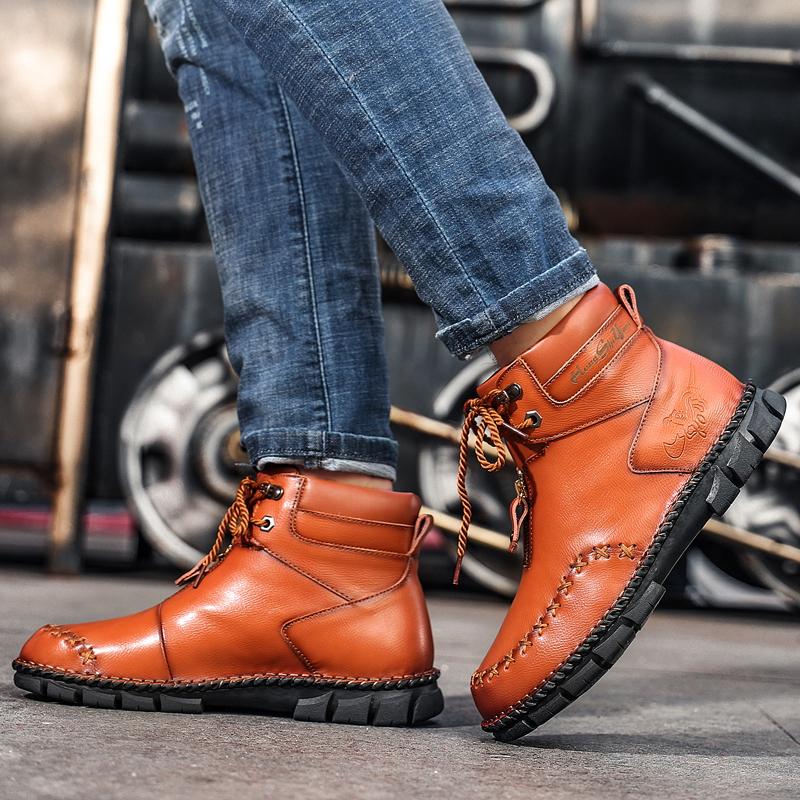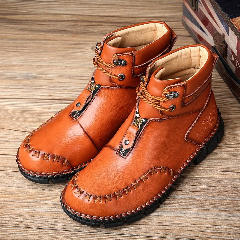 Мужские ботинки ручной работы из натуральной кожи Ретро ботинки Мужская натуральная кожа Большая мужская обувь Высокий верх