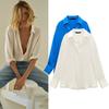 Loose Long Sleeves Single-Breasted Silk Satin Texture Drape Shirt