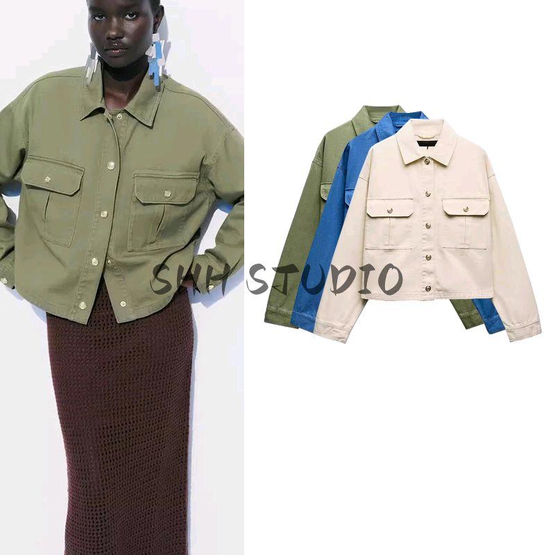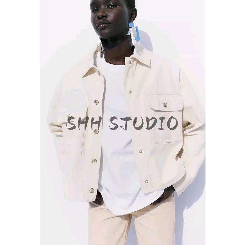 Spring and Summer New Women's Clothing Lapel Long Sleeves Casual Pocket Decoration Cotton Shirt Style Jacket Outwear 8372083
