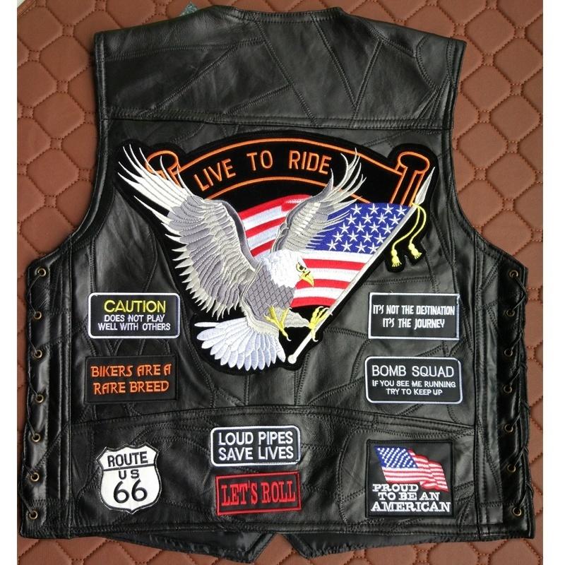 Модный байкерский мотоциклетный жилет из натуральной кожи, жилет в стиле панк, байкерский жилет для скрытого ношения с нашивками, мотоциклетные куртки
