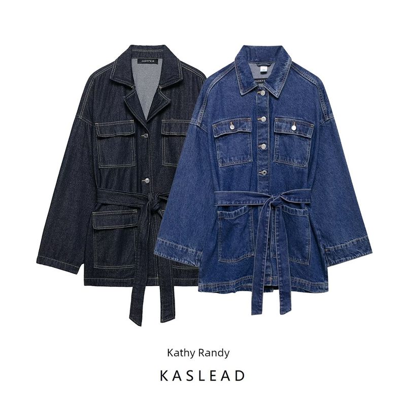 Kaslead Новое поступление Женская одежда Модный стиль Модная талия Шнуровка Контролируемая талия Лацкан Джинсовая верхняя одежда 1208391