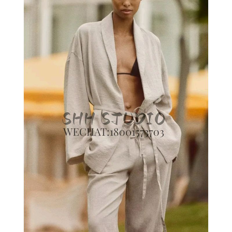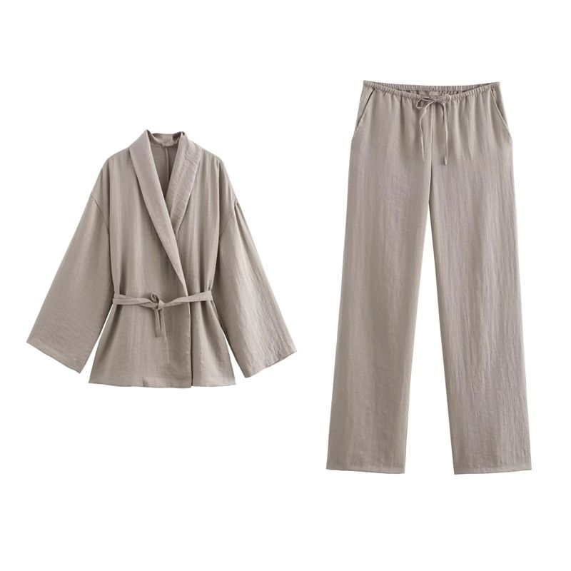 Spring New Arrival with Belt Texture Kimono Outerwear 8338735 Pajamas Style Pants 4391436
