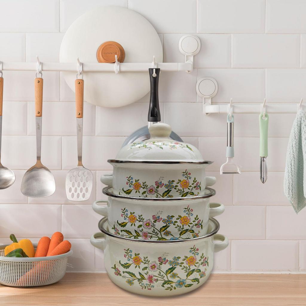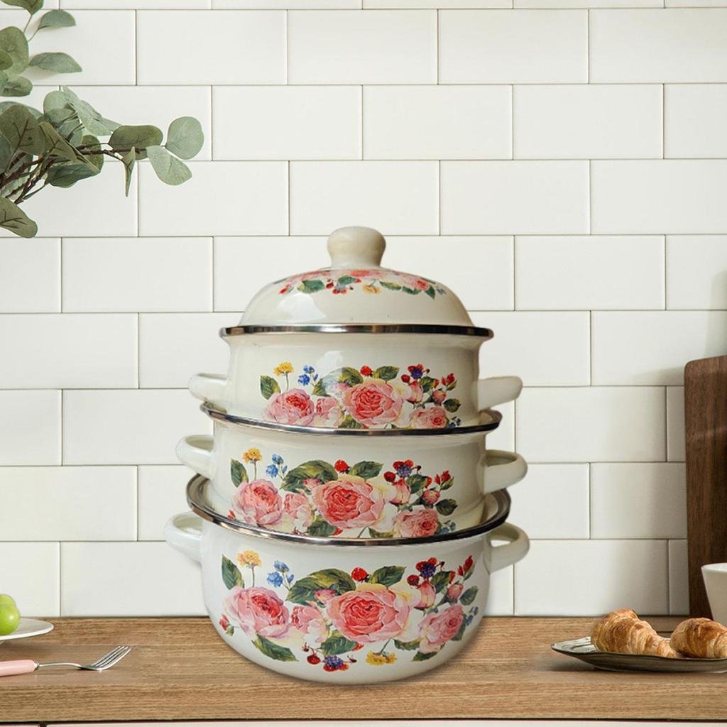 3x Эмалированные кастрюли для тушения, Посуда, Винтажный дизайн, Кастрюли для приготовления пищи, для индукционных плит, газовых плит, Кухня, Столовая