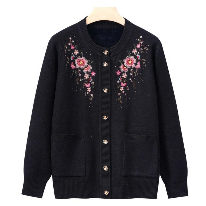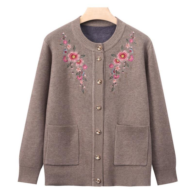 Бабушкина зимняя одежда новая базовая рубашка женская среднего и пожилого возраста вязаный свитер с характером кардиган для мамы топ одежда для пожилой женщины