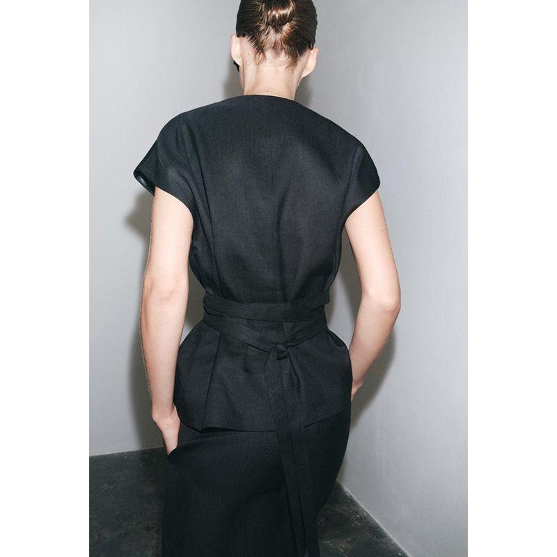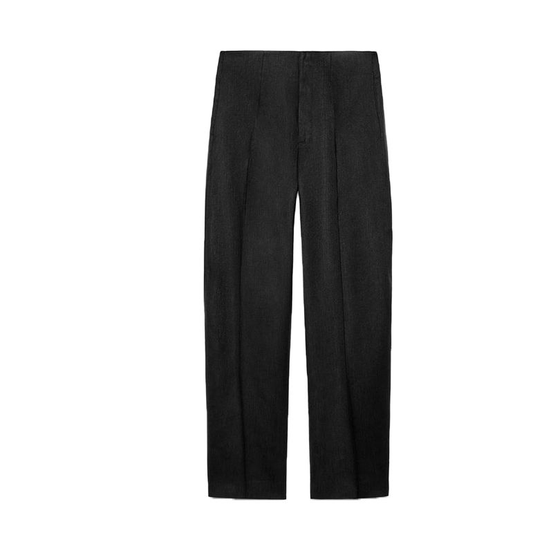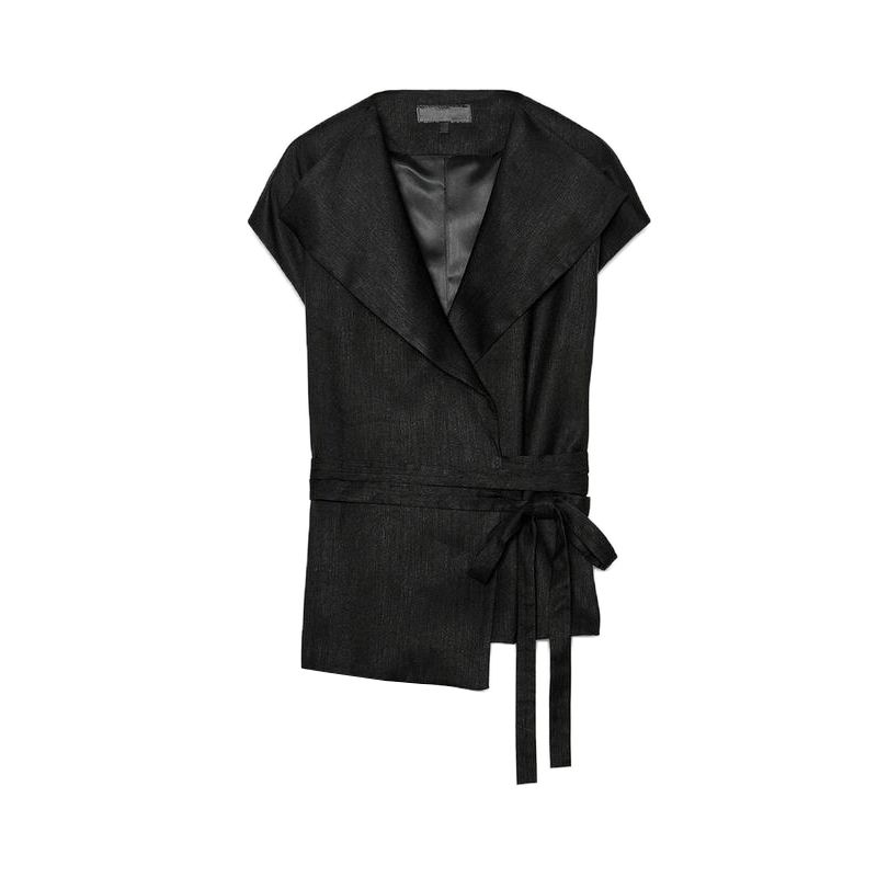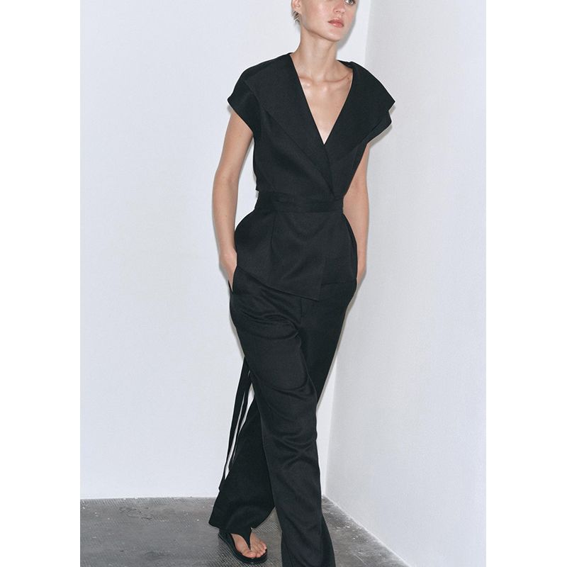 Жилет без рукавов с лацканами из смесового льна 3132168 Прямые брюки средней посадки из смесового льна 3136168