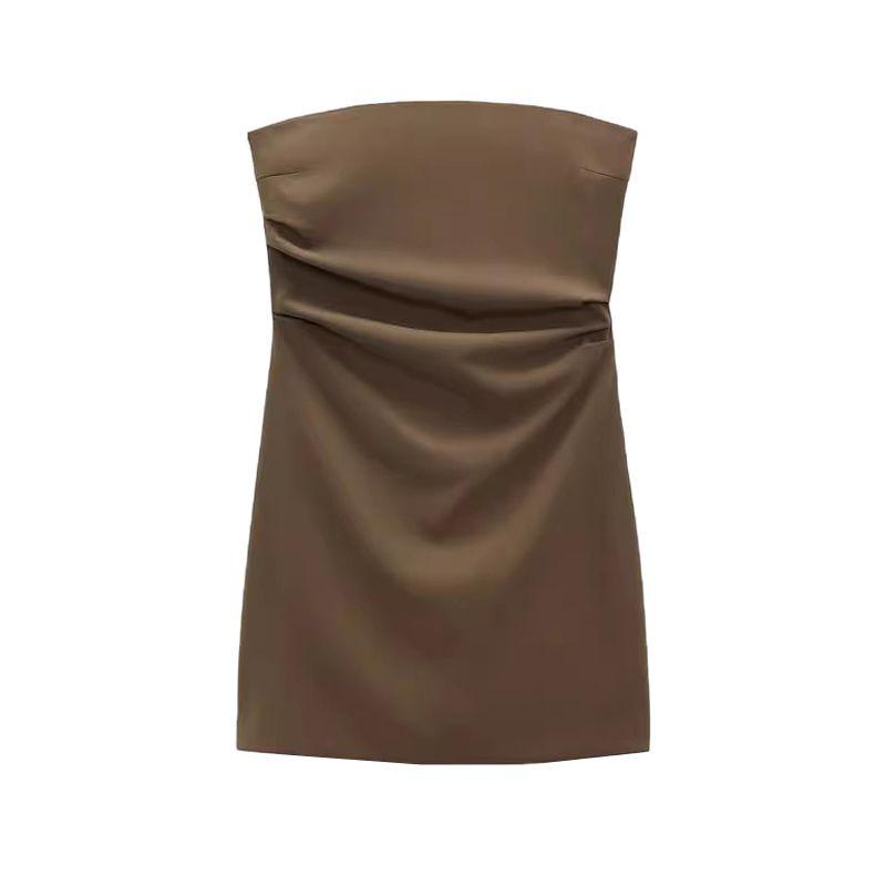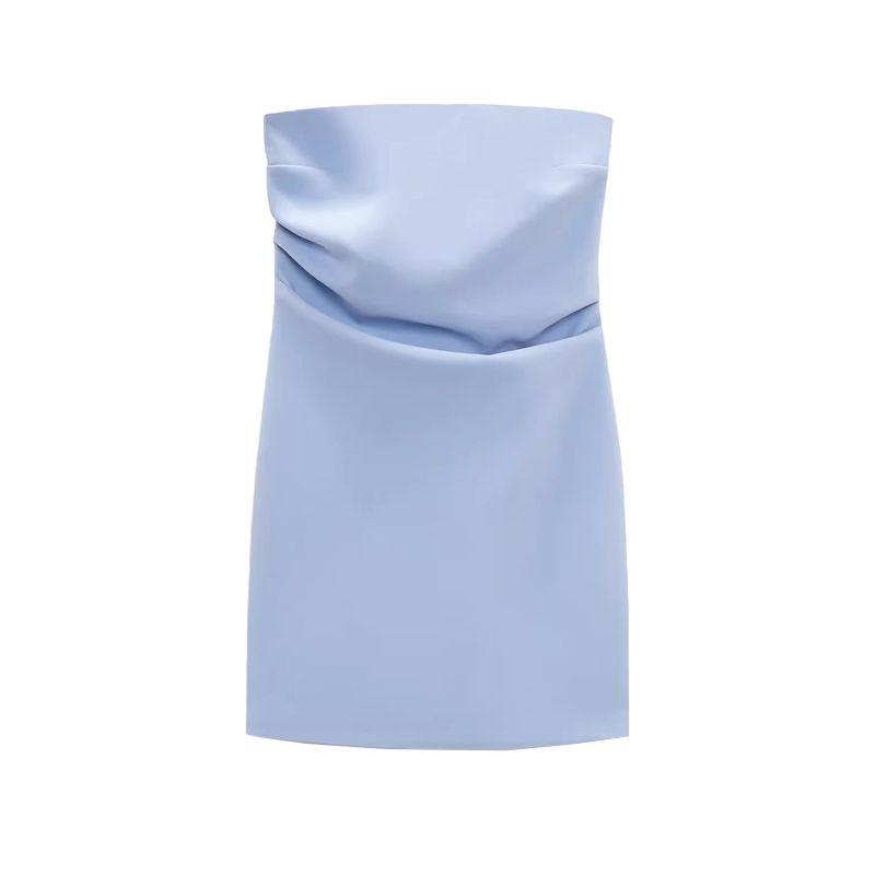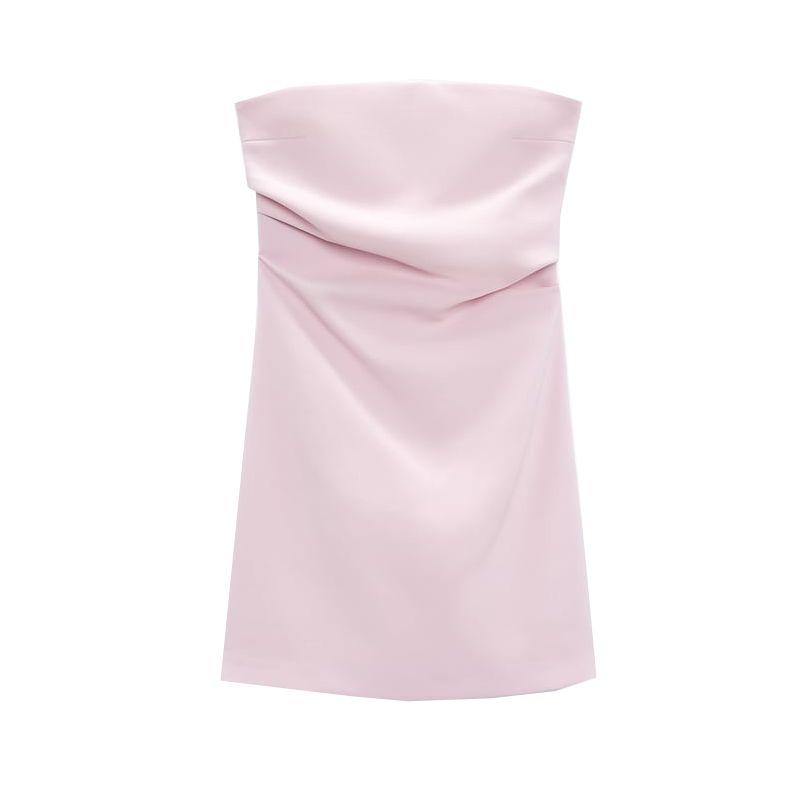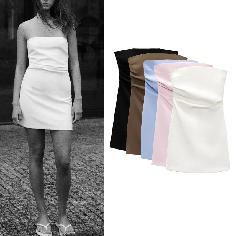 Spring New Style White Ruched Silm Straight Collar Tube Top Dress 7905717 3067365 3180332