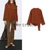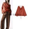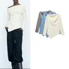 Autumn New Women's Clothing Asymmetric Collar Wide Sleeve Design Plain Stitch Layer Drape Long Sleeves Tops 3456104