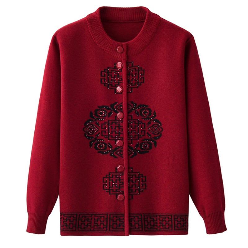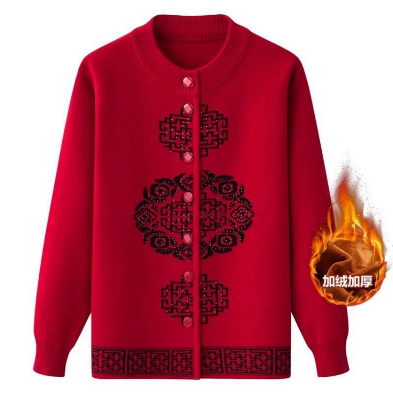 Новые навыки мамы Праздничный топ на Новый год Вязаный кардиган-свитер для пожилых людей Утолщенная бабушкина куртка-свитер