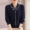 Мамина осенняя рубашка новый раннеосенний свитер с лацканами весенне-осенняя трикотажная рубашка с длинным рукавом женский топ