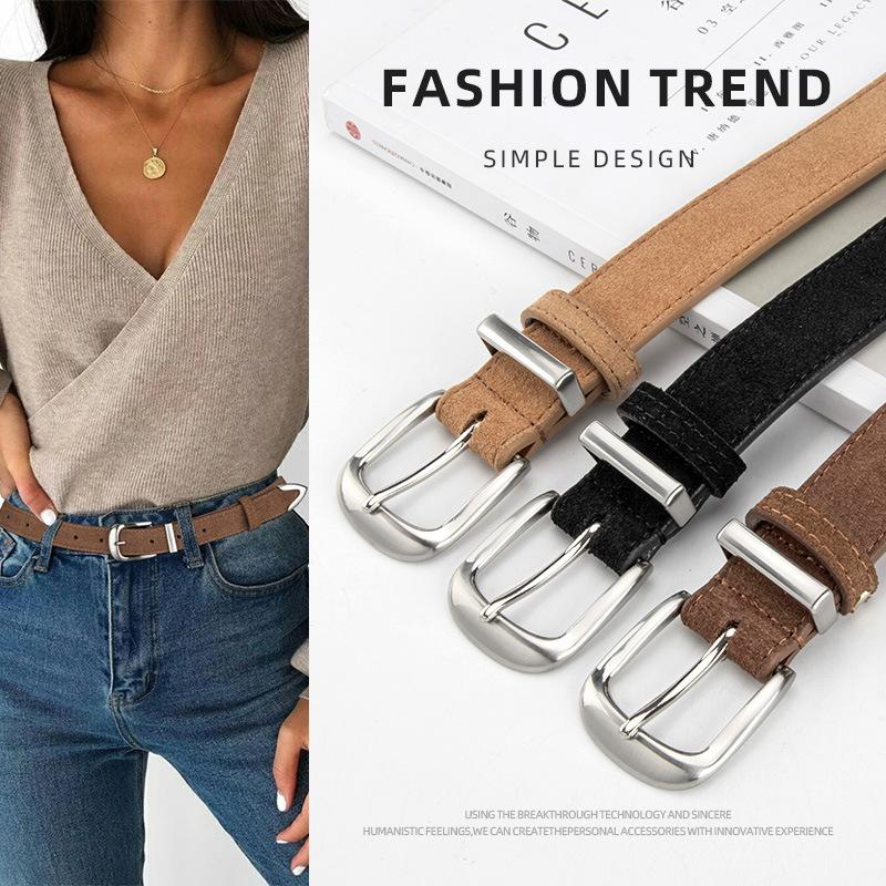 Женский ремень из натуральной кожи, матовый реверсивный бархат, ретро, корейский стиль, модный, универсальный, для юбки, джинсов — купить товар онлайн с бесплатной доставкой по всему миру!