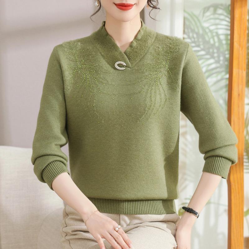 Мамин пуловер осень и зима флис утолщенный красный свитер для женщин среднего и пожилого возраста цельный флис теплый вязаный базовый свитер