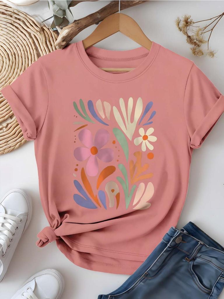 Художественная футболка с цветочным графическим принтом для женщин, шикарная, свежая, модная, летняя, хлопковая, с коротким рукавом